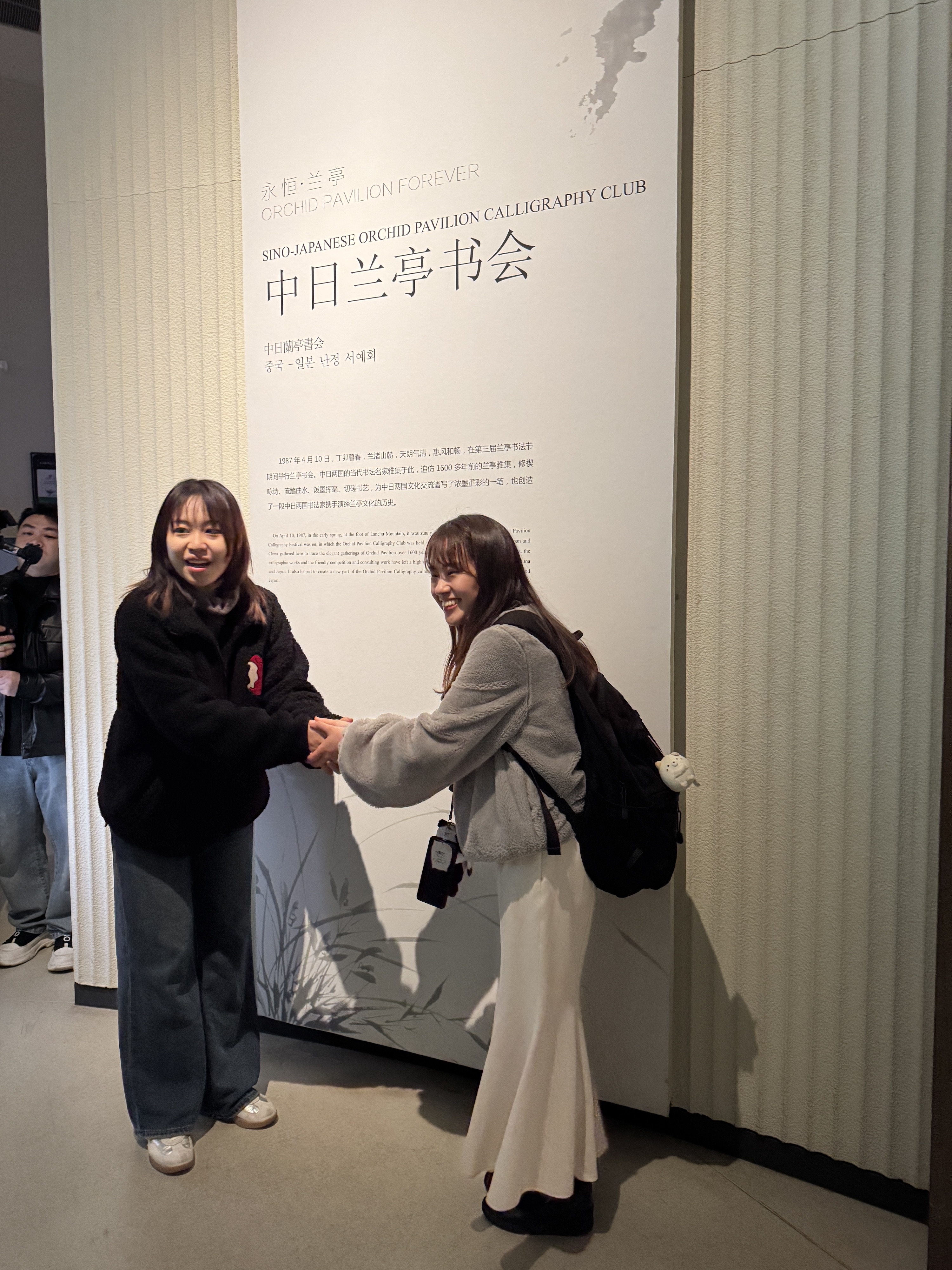 蘭亭景勝区内にある博物館では、書道や蘭亭の歴史を知る展示や、過去に現地で書かれた作品の数々を見ることができます。中には日本人書家の作品も。参加者たちも、連綿と続く書道交流の輪に加わったことを実感しました。