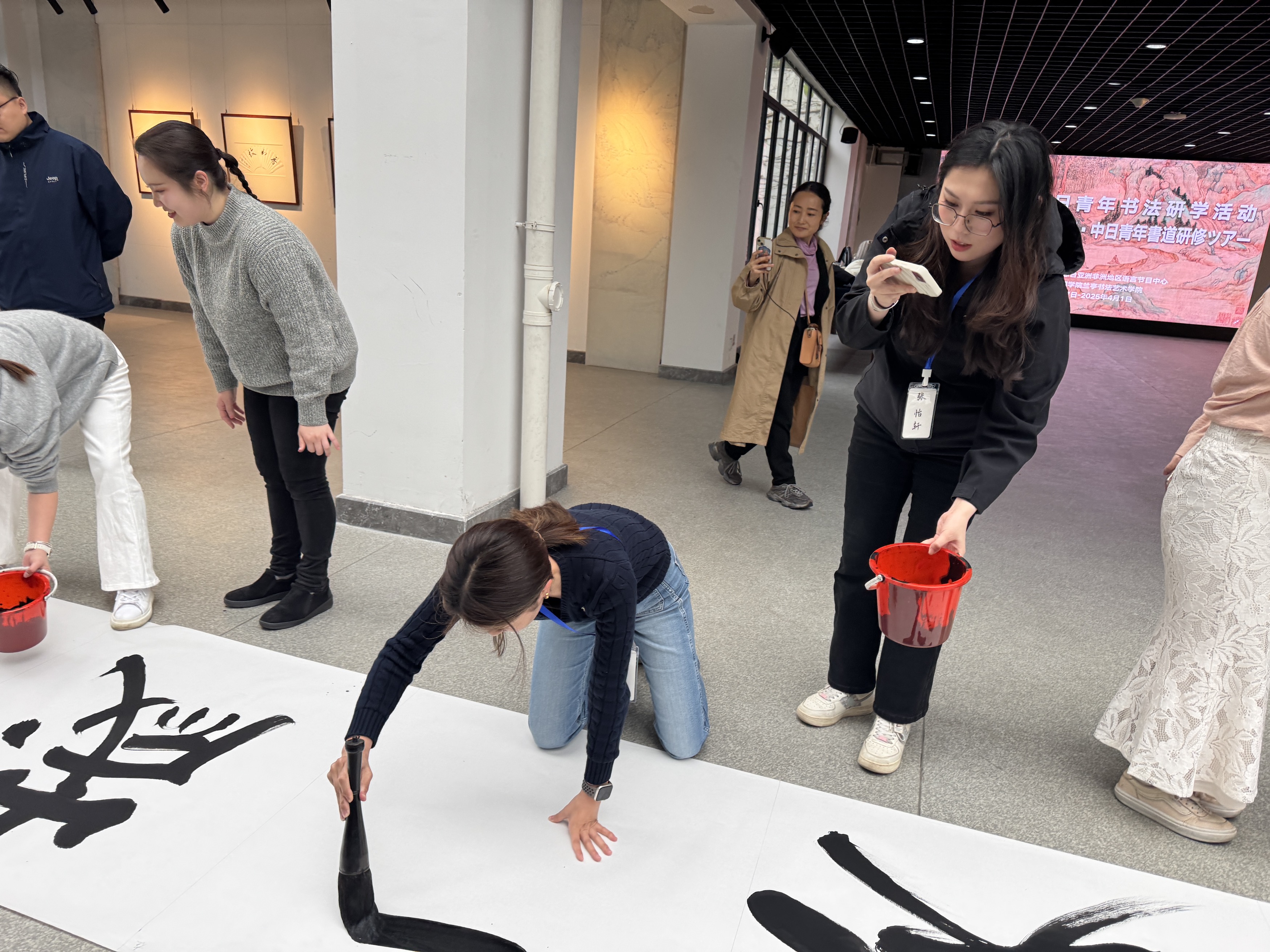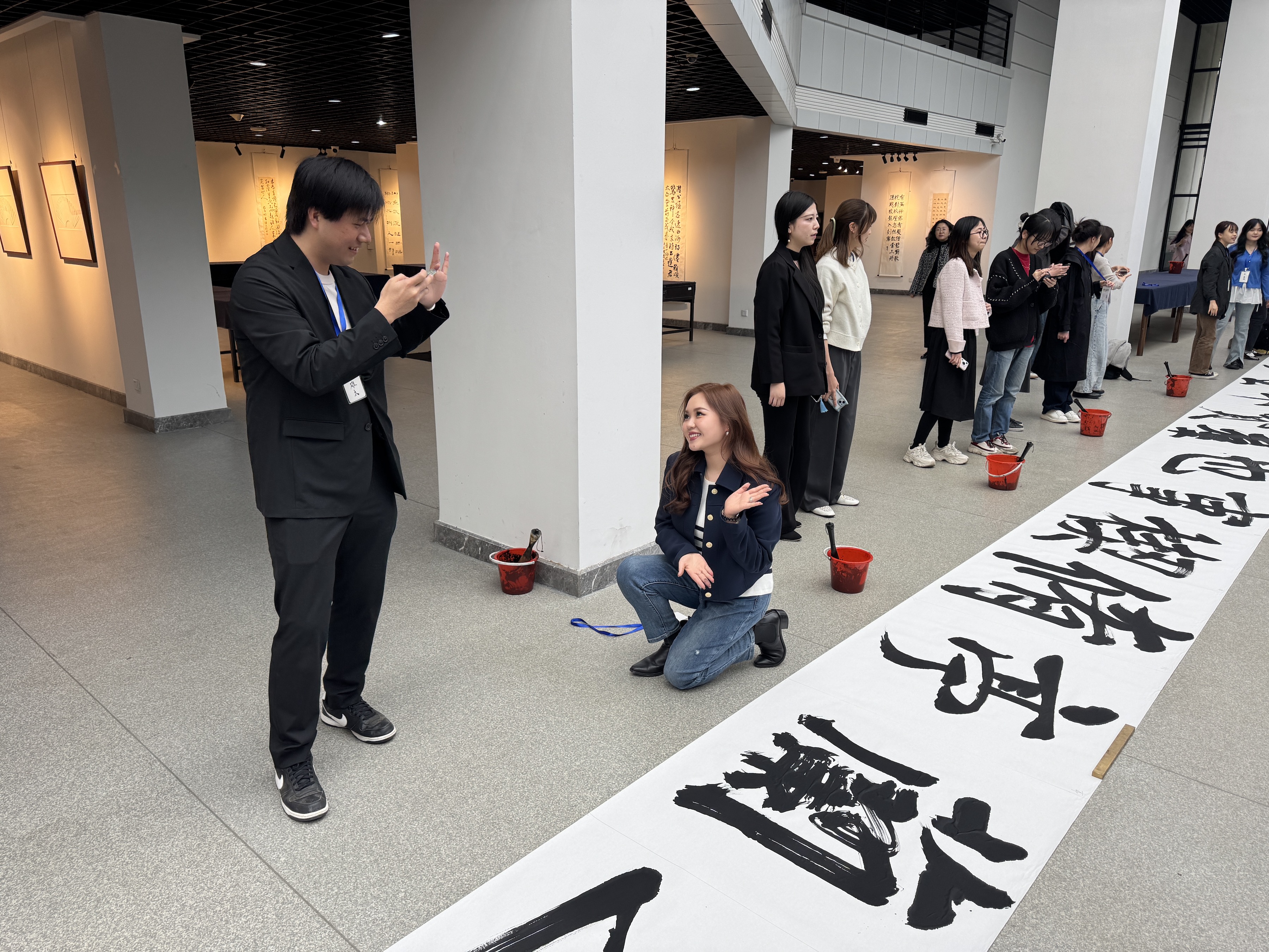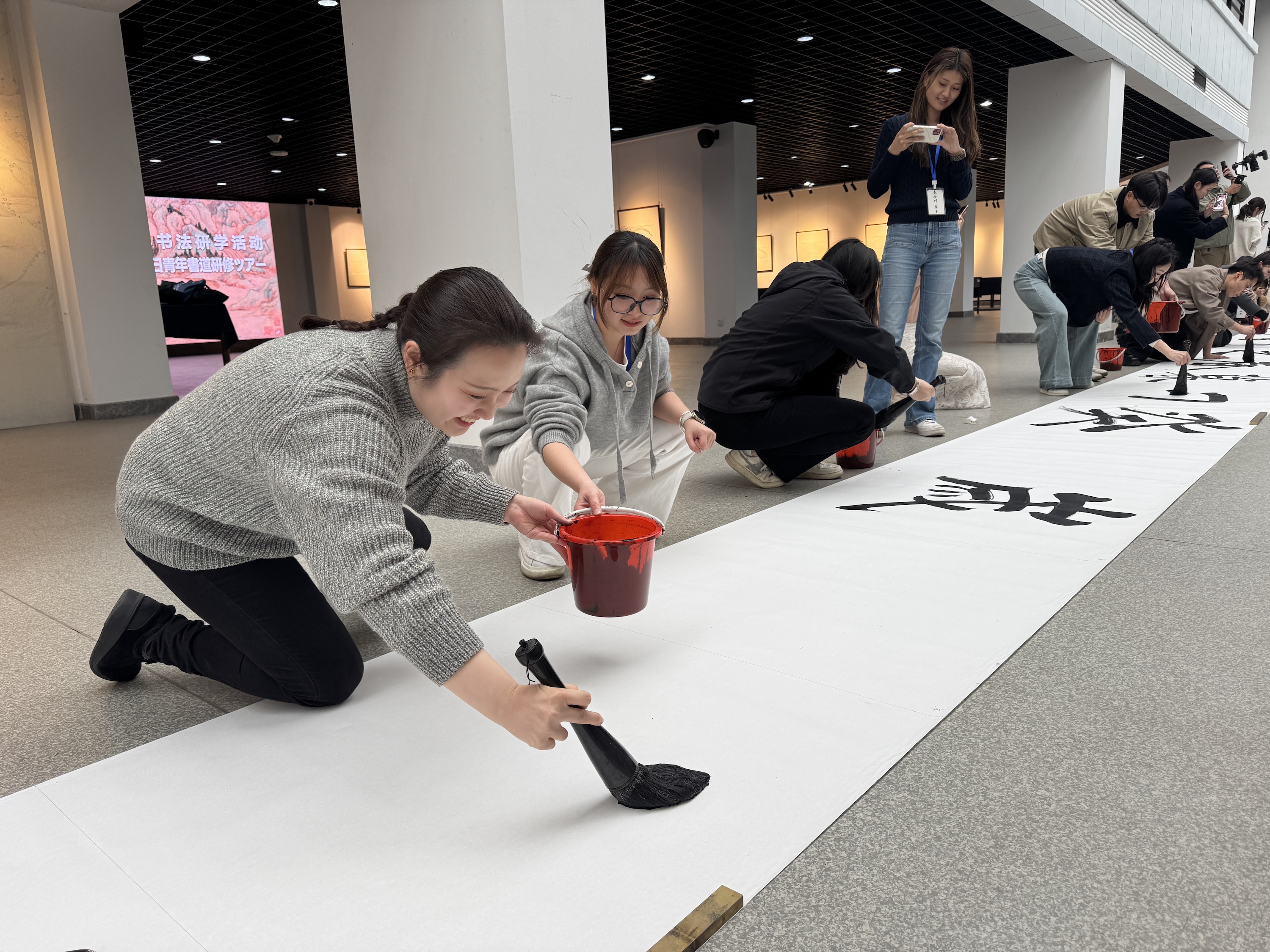 陽春暢写は蘭亭書道芸術学院の春の恒例行事。大きな紙に大きな字を、一人一字ずつのびのびと書きます。今回は学内展示ホールの通路を目いっぱい使って、長さ44メートルの紙に44文字を書き上げました。題材は「蘭亭序」。貴重な体験になりました。