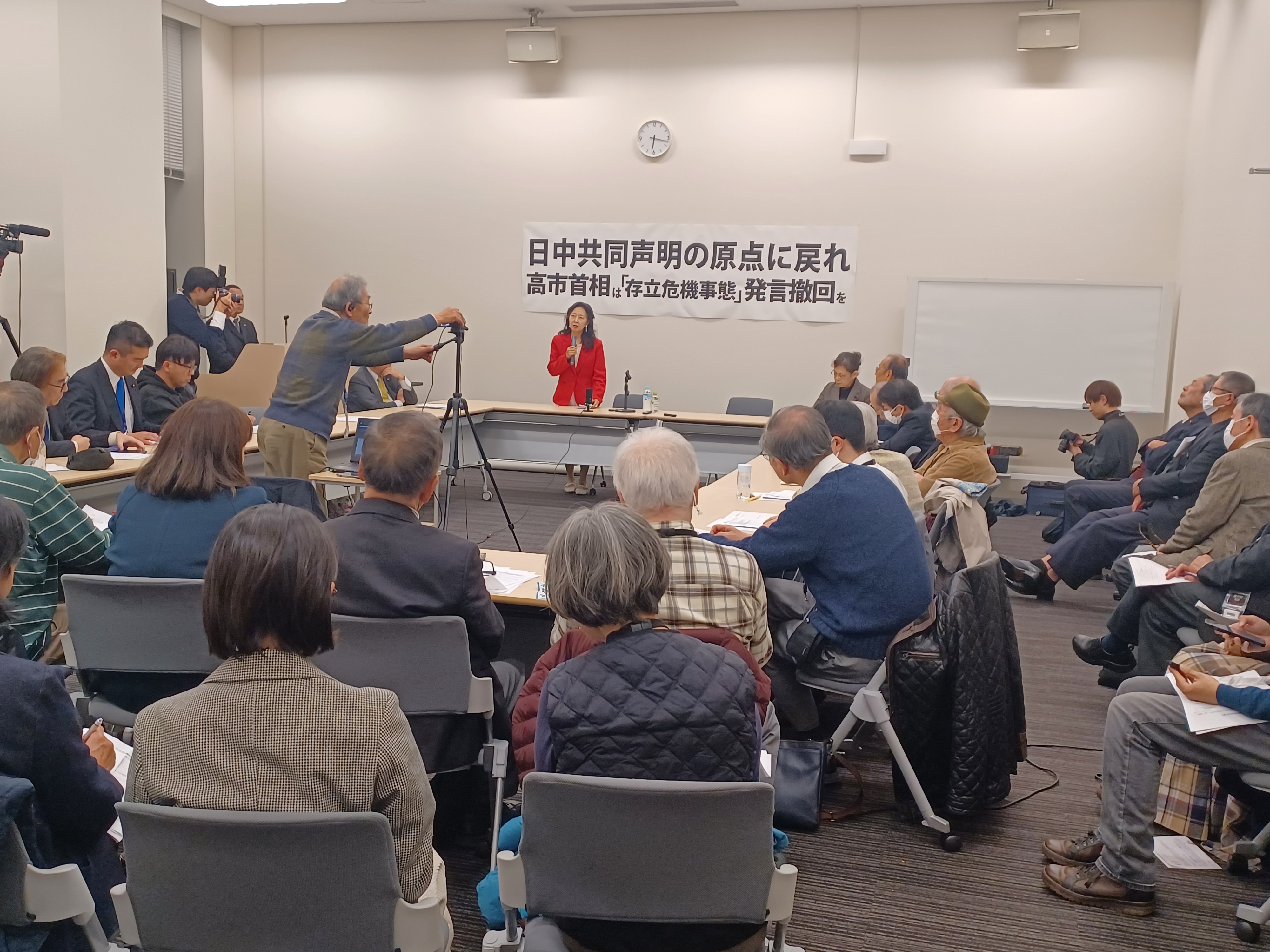 高市首相に「存立危機事態」発言を撤回し、国交正常化の原点に戻ることを求める緊急集会が12月2日に東京で行われました。主催は日本の民間団体である「自主・平和・民主のための広範な国民連合」が事務局を担当する「高市首相発言撤回を求める緊急集会実行委員会」。日本政府の元高官、現役国会議員10人余りを含む各界の有識者120人が参加しました。