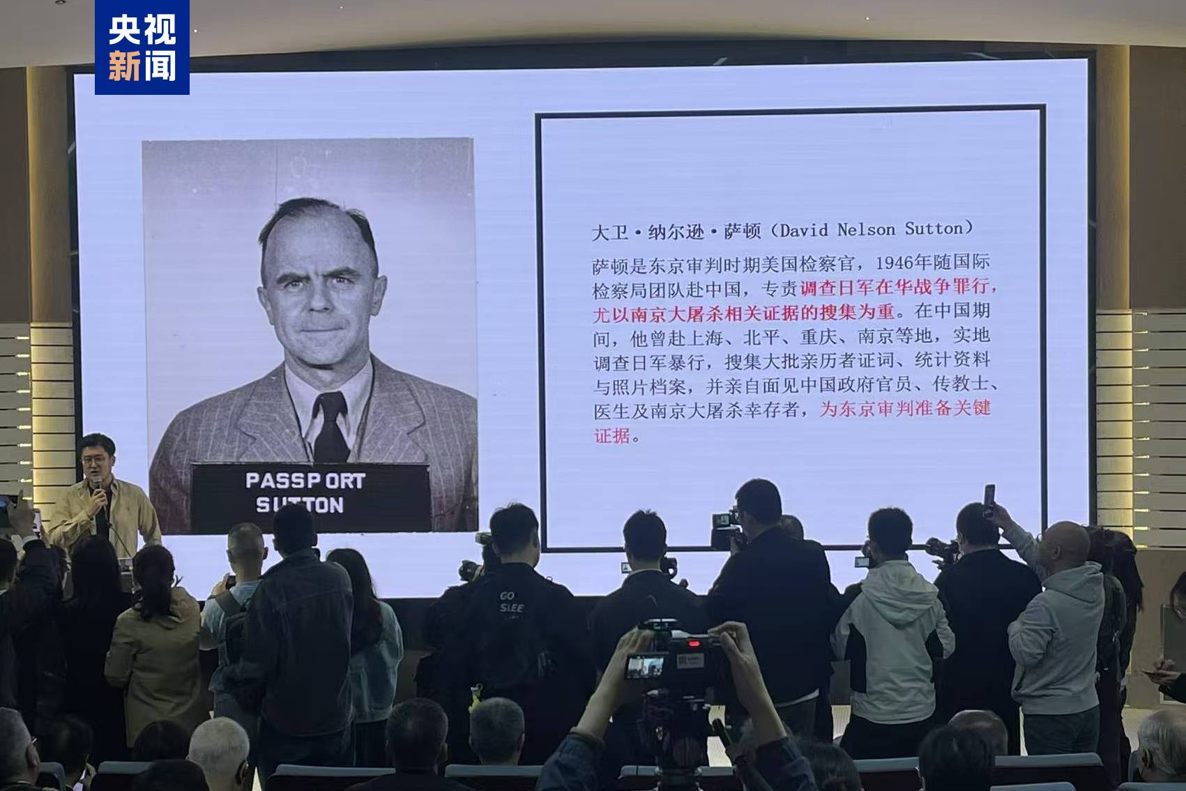 侵華日軍南京大屠殺遇難同胞記念館で4月29日、寄贈式が行われ、東京裁判で米国が副検察官として派遣したデイビッド・ネルソン・サットン氏の貴重な資料18点(セット)が正式に記念館に収蔵されました。