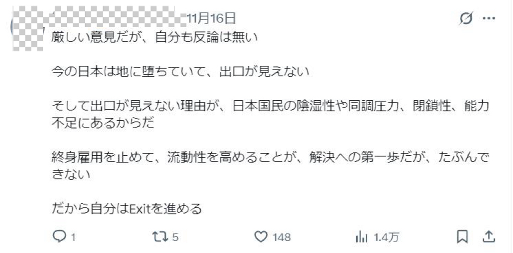それでも多くの日本のユーザーが比較的冷静に受け止めたのは、これらの指摘が「外からの攻撃」としてではなく、日本人自身が日頃感じてきた「閉塞感」と重なる部分があったからではないか。賃金の伸び悩みや物価の高騰、将来不安の広がりなど、実感があるからこそ、外部の文章に対しても、どこか納得を含んだ受け止め方がなされたとみられる。