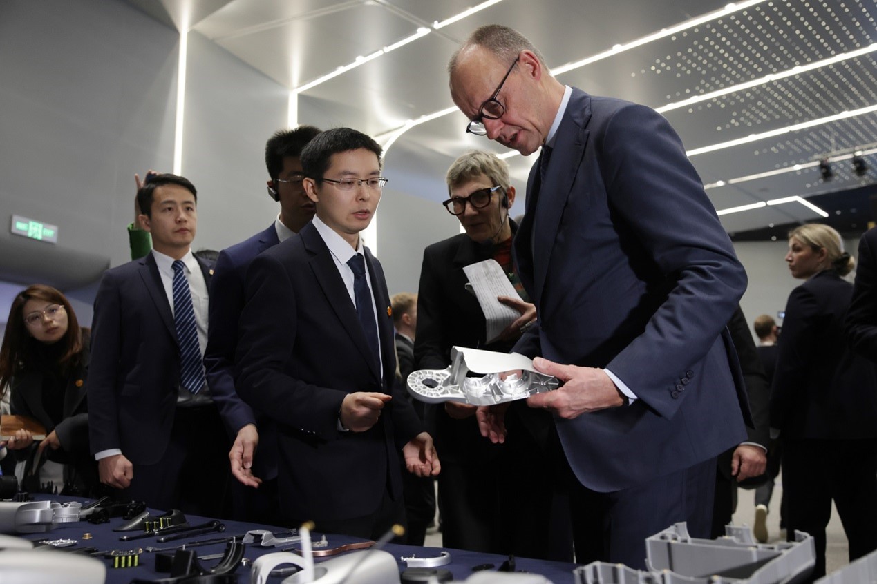 26日午後、メルツ首相は中国のロボット企業であるユニツリー(宇樹科技)を訪問しました。同社の創業者でもある王興興最高経営責任者(CEO)は、メルツ首相一行に中国のロボット開発の最新状況を紹介し、その場でロボットによるボクシングやダンスなどを披露しました。王CEOは、「ドイツは非常に重要な市場であり、メルツ首相の今回の訪問を契機により多くのドイツ企業と提携関係を築き、世界のスマートロボット産業の発展を推進することを期待している」と述べました。