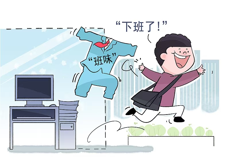 「味」をアール化して、「班味儿」ということもあります。「班」には「上班」=出勤する、「下班」=退勤するという使い方があり、「上班族」は勤め人という意味になります。「班味」は直訳すると、勤めている匂い、雰囲気となります。