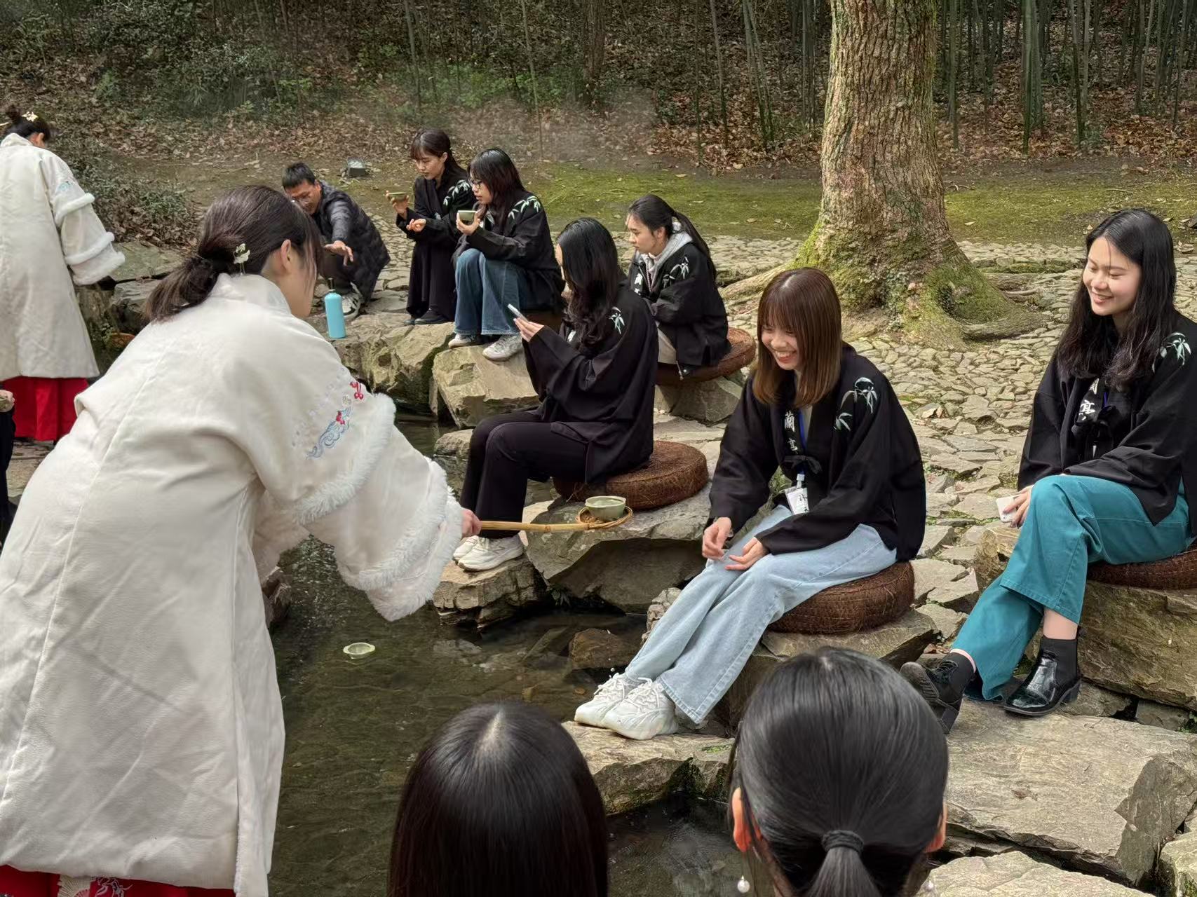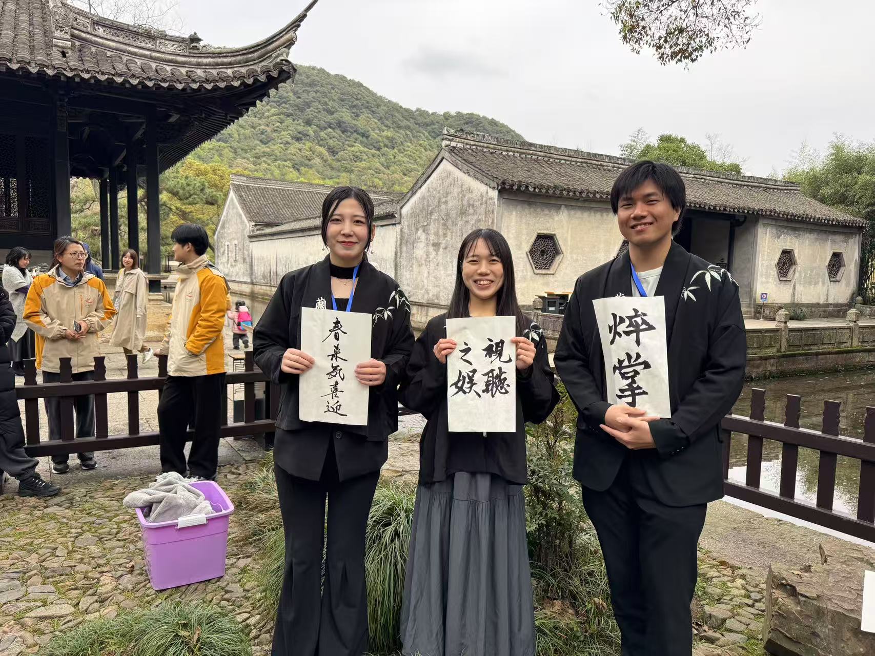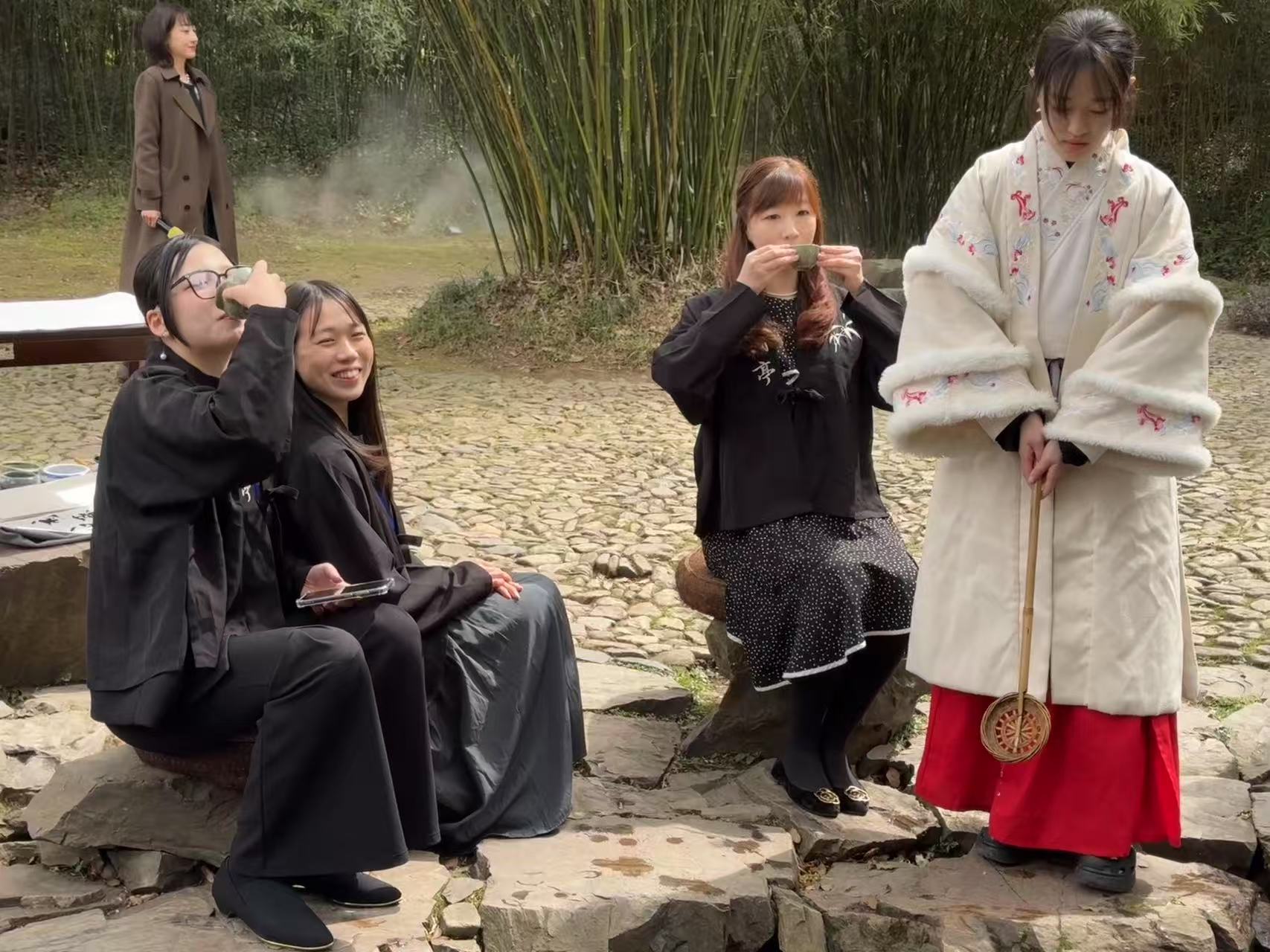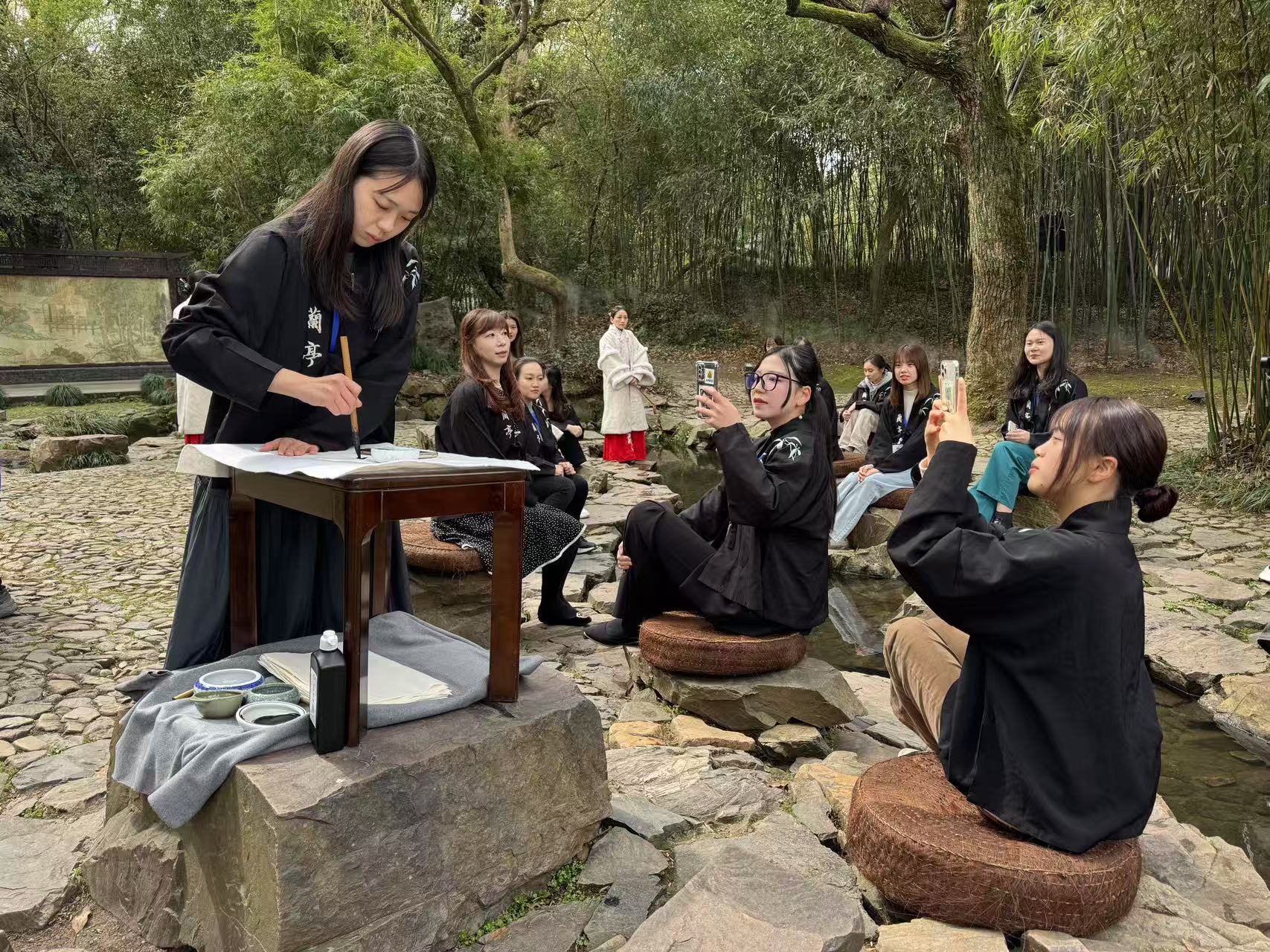 昨年、NHK大河『光る君へ』で取り上げられて日本でも話題になった「曲水の宴」こと「流觴曲水」(りゅうしょうきょくすい)を、書の聖地・蘭亭で体験。目の前でさかずきが止まったら、詩作する代わりに書や歌を披露しました。