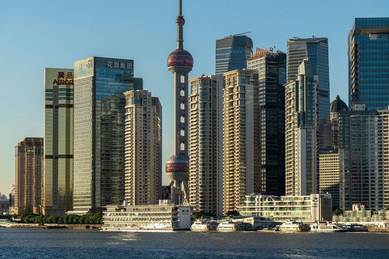 上海市浦東新区陸家嘴の黄浦江沿いの建築群