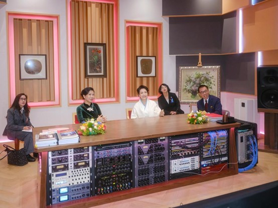 彭麗媛氏とゴー・フオン・リー氏は、大劇院内のオペラ劇場、VR(仮想現実)制作スペースと録音スタジオを見学し、芸術創作支援、文化サービスの提供、国際文化交流の推進など、同劇院が行っている取り組みについて理解を深めました。