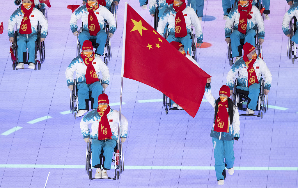 北京冬季パラリンピック開会式で入場行進する中国選手団