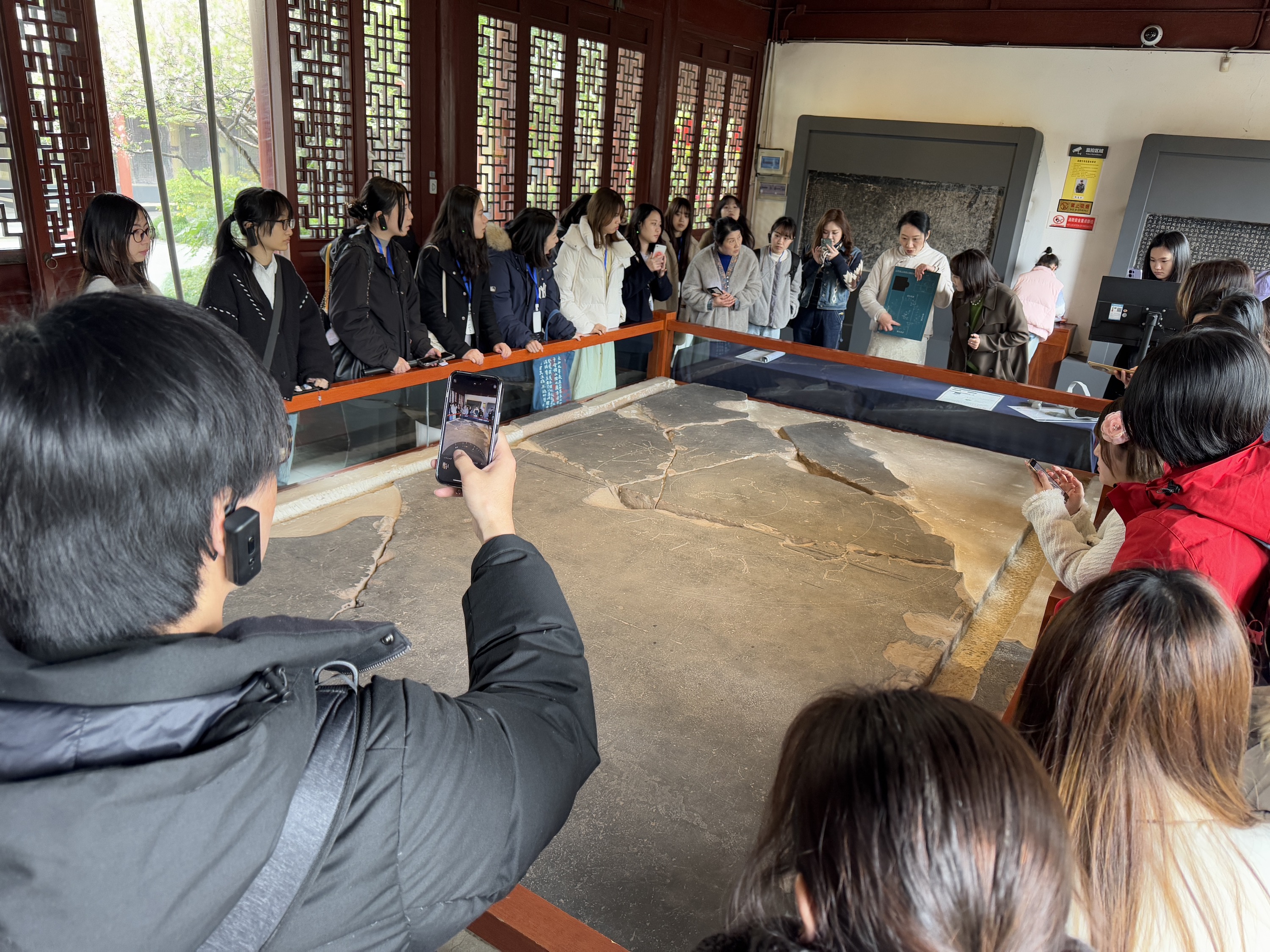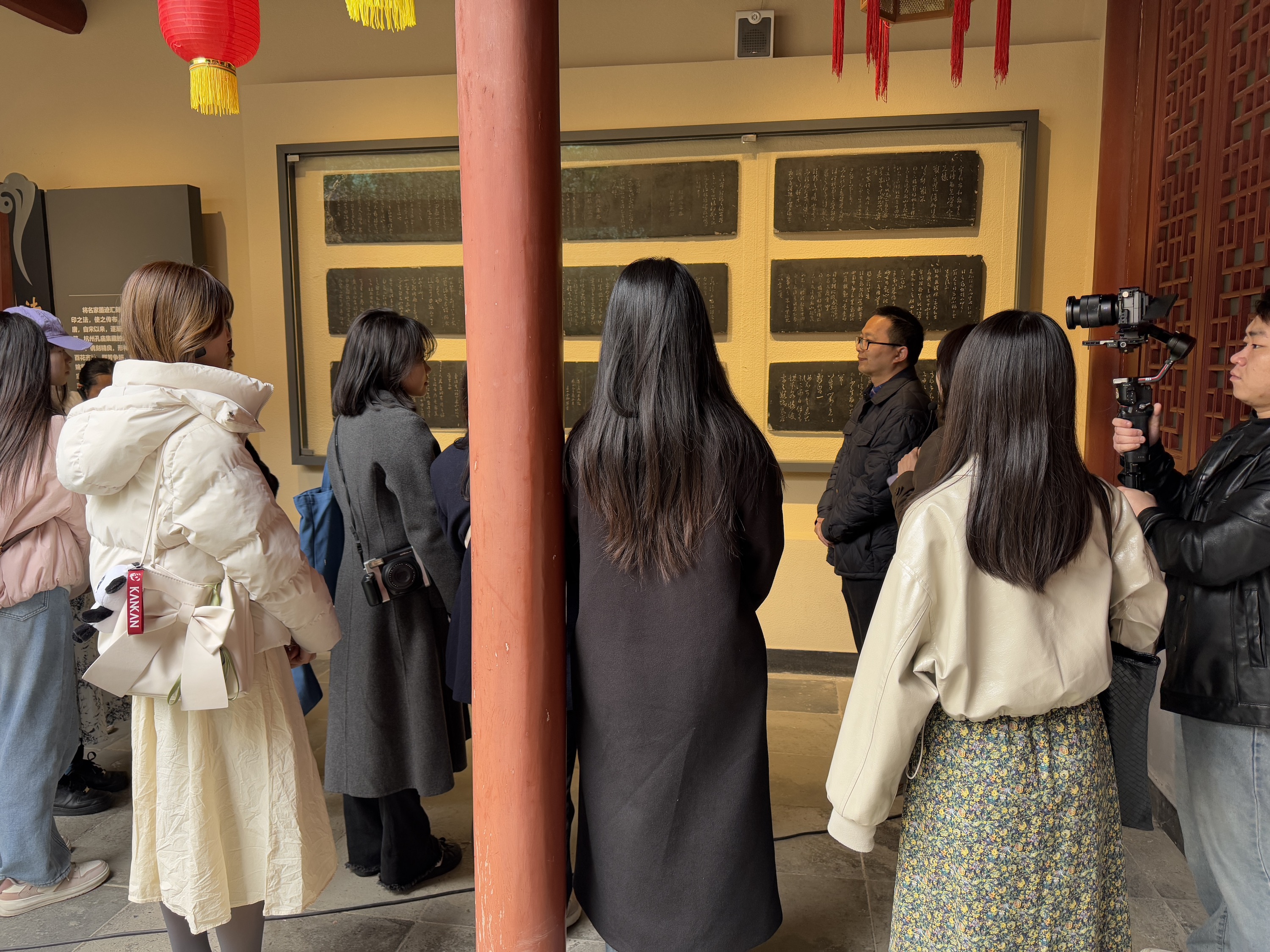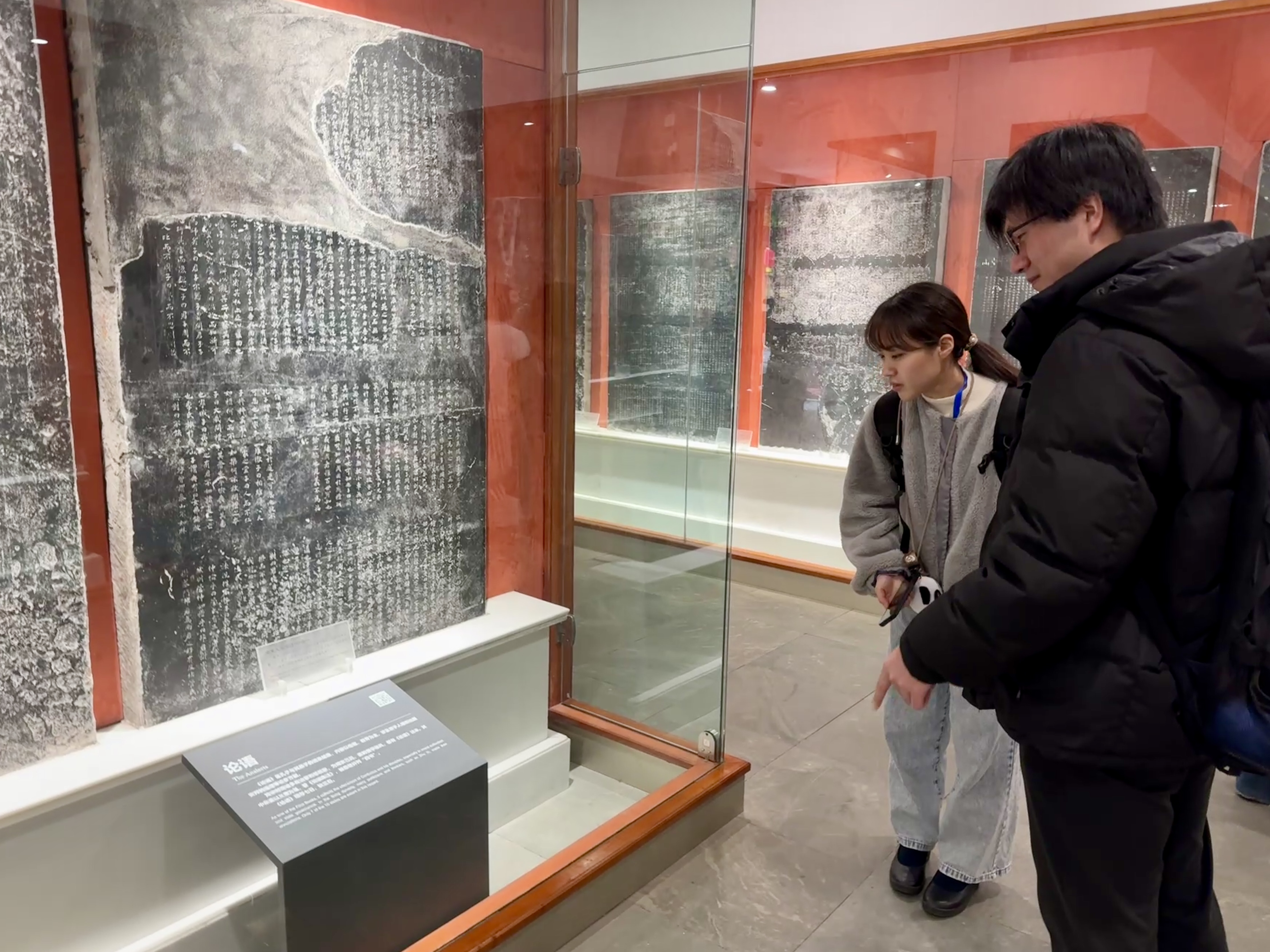 孔廟に併設されている碑林には、南宋から清代末期までの石碑が約800基収蔵されています。専門家の盧先生の案内で、王羲之の書簡を石に刻んだ「右軍六十帖」などを鑑賞。美しい庭園にも癒されました。