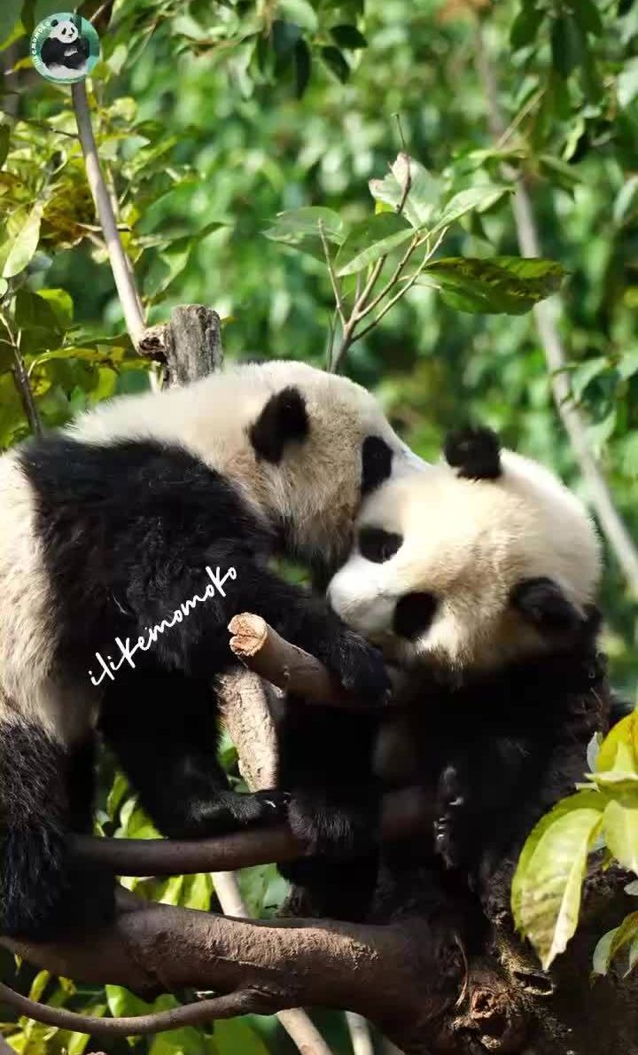 仲良しの愛妮(アイニー/愛浜の子)と珍瑞(ジェンルイ/珍喜の子)。 ここは二頭のお気に入りスポットで、よく遊んだり寝たりしてる。