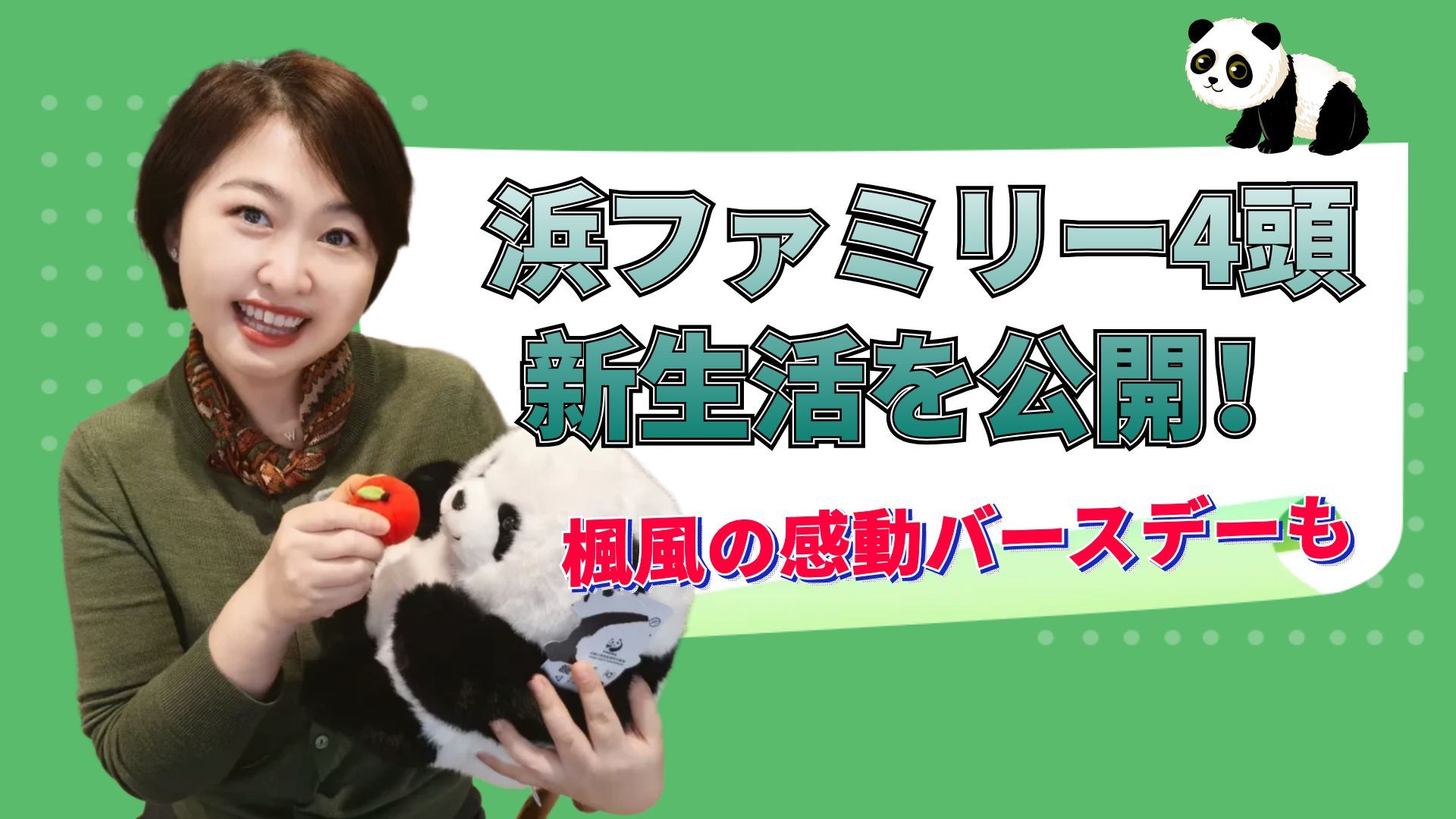 6月に和歌山から中国へ帰国した“浜ファミリー”の4頭—— 良浜、結浜、彩浜、楓浜が、この秋ついに一般公開! その新しい暮らしの様子を最新映像でお届けします。さらに、11月22日に誕生日を迎えた楓風の映像と、飼育員さんへの特別インタビューも!